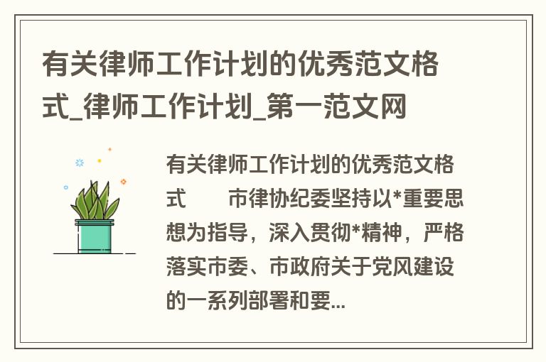 有关律师工作计划的优秀范文格式_律师工作计划_盘古文库