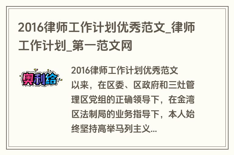 2016律师工作计划优秀范文_律师工作计划_盘古文库