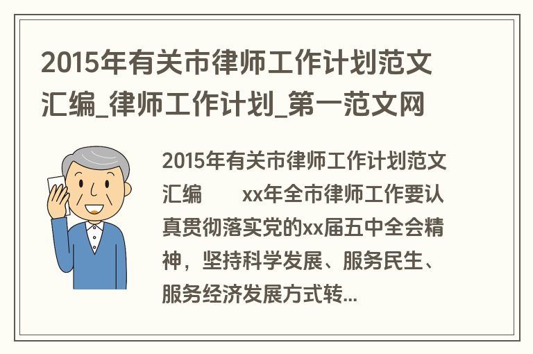 2015年有关市律师工作计划范文汇编_律师工作计划_盘古文库