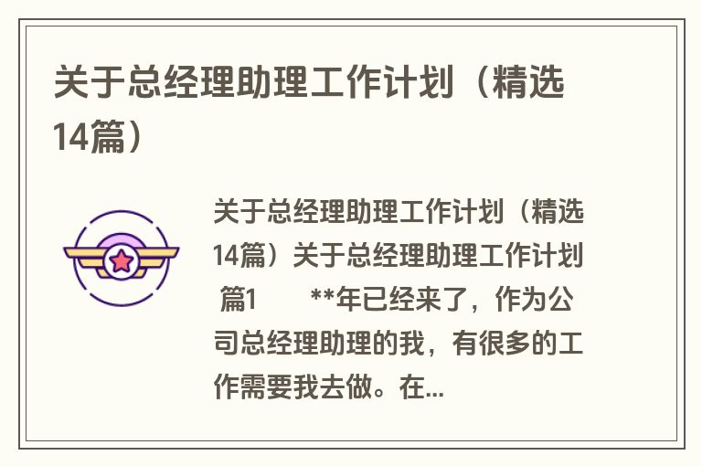 关于总经理助理工作计划(精选14篇)
