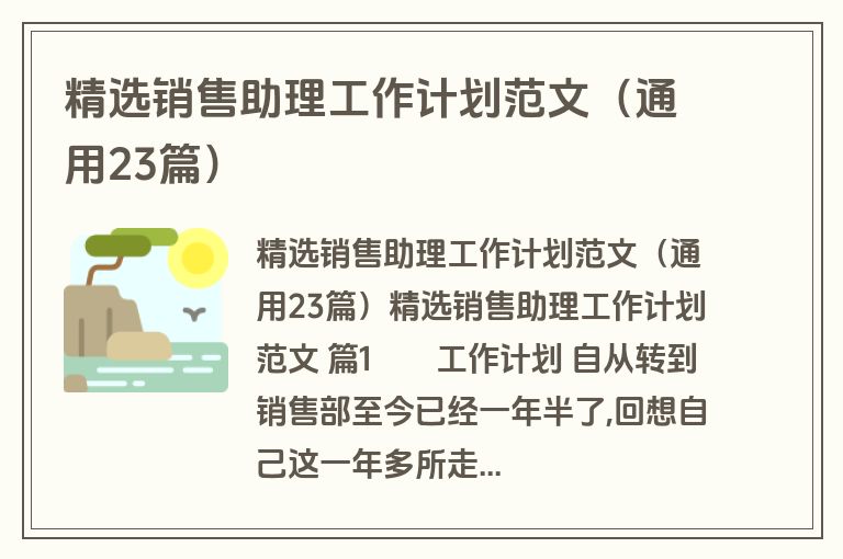 精选销售助理工作计划范文(通用23篇)