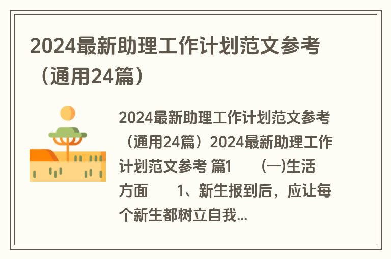 2024最新助理工作计划范文参考(通用24篇)