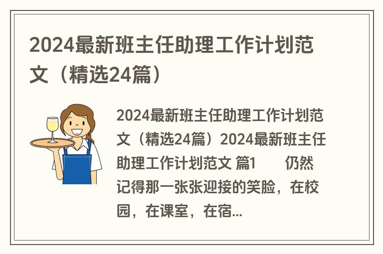 2024最新班主任助理工作计划范文(精选24篇)