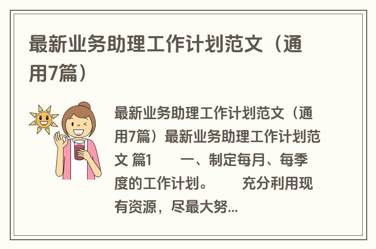 最新业务助理工作计划范文(通用7篇)