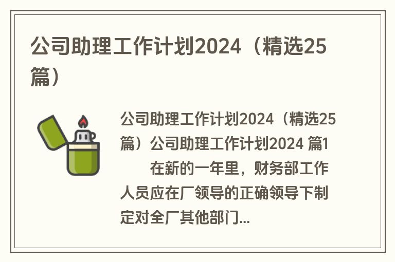 公司助理工作计划2024(精选25篇)