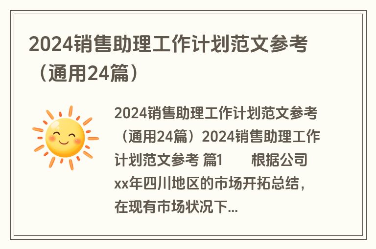 2024销售助理工作计划范文参考(通用24篇)