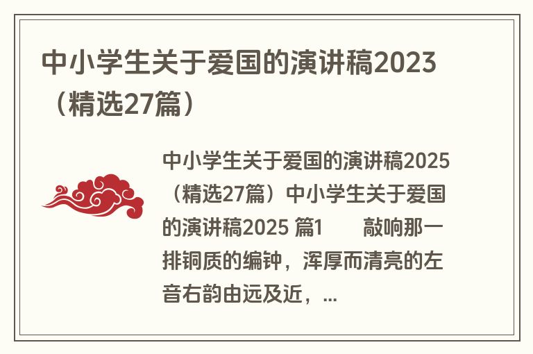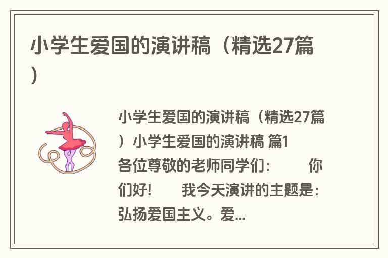 中小学生关于爱国的演讲稿2023(精选27篇)