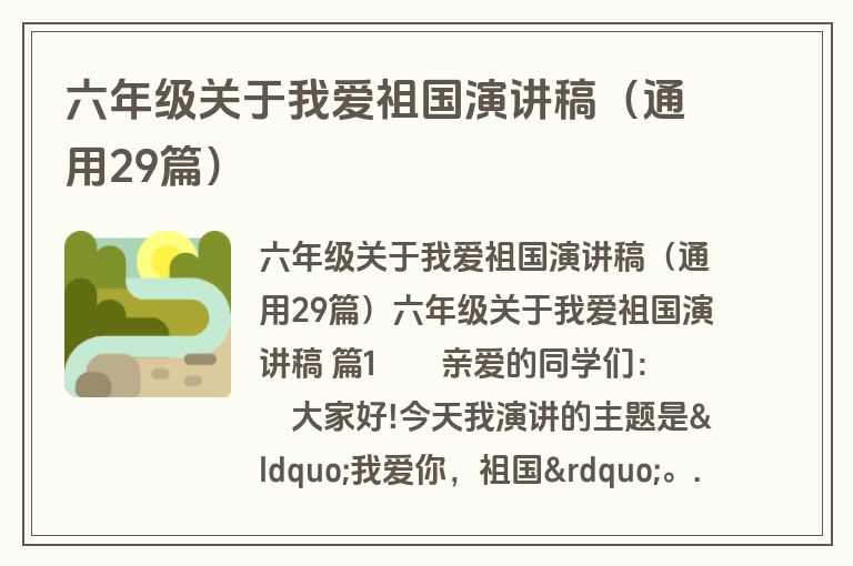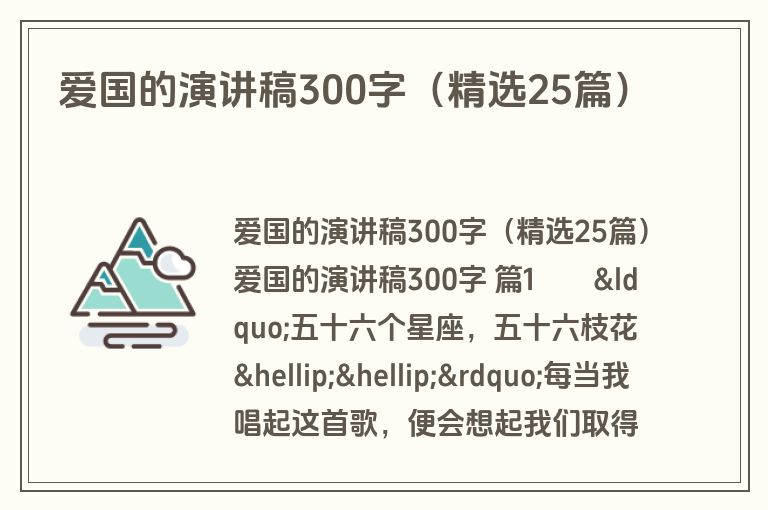 热爱祖国的优秀演讲稿2023(通用27篇)