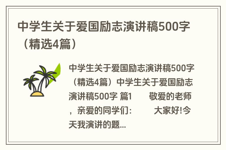 中学生关于爱国励志演讲稿500字(精选4篇)