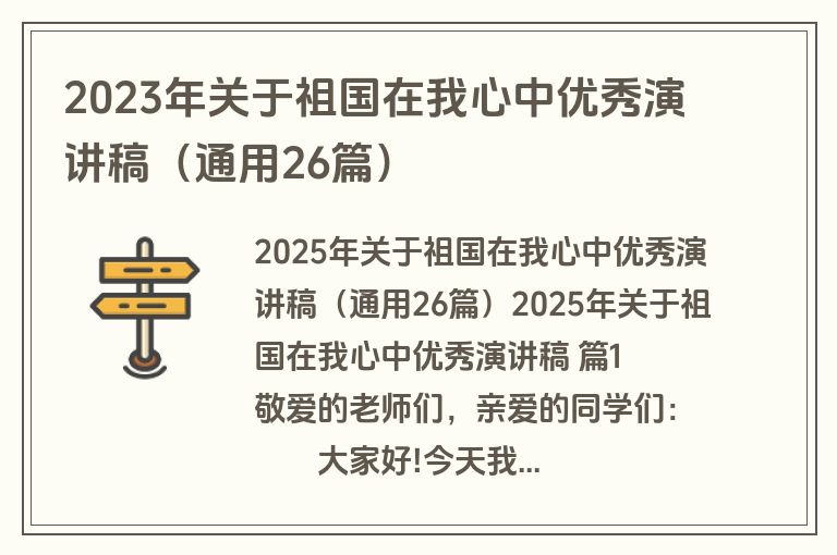 2023年关于祖国在我心中优秀演讲稿(通用26篇)