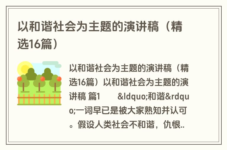 和谐家庭演讲稿_让爱充满家(通用32篇)